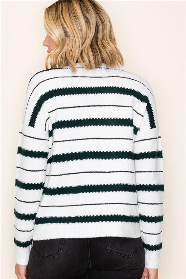 Courtney Striped Sweater - Cream & Dark Green