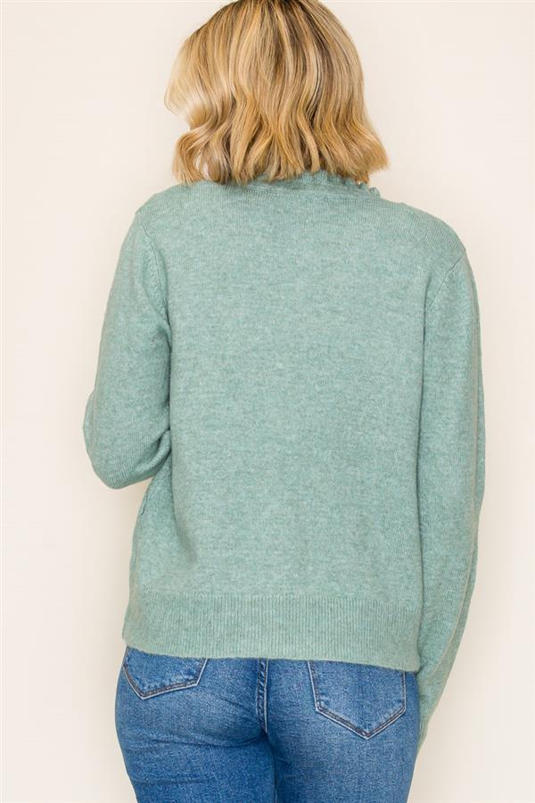 Ophelia Ruffle Neck Button Down - Heathered Apple Jade