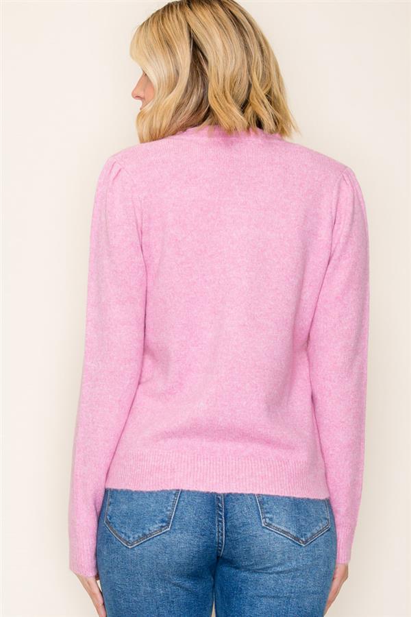 Tyler Ruffle Neck Sweater - Heathered Cyclamen