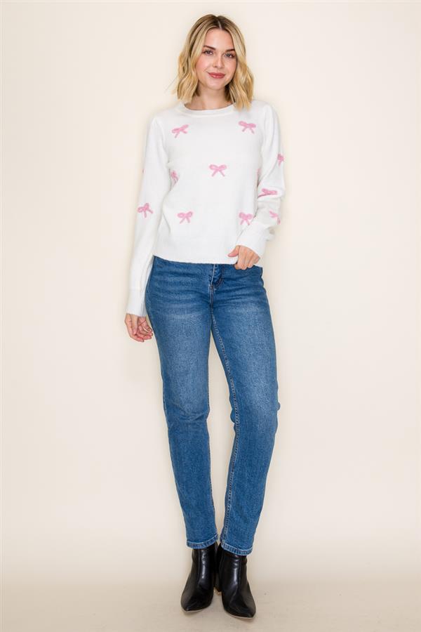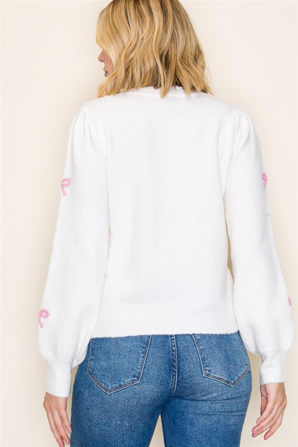 Serena Bow Embroidered Sweater - Cream & Shocking Pink