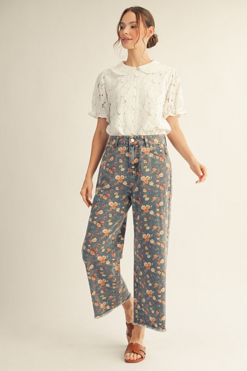 Alice Floral Wide Leg Denim - Rich Warm Floral