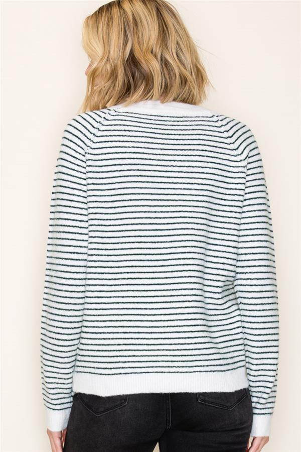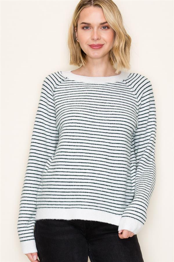 Hope Striped Raglan Sleeve Sweater - Leaf Green & Cream