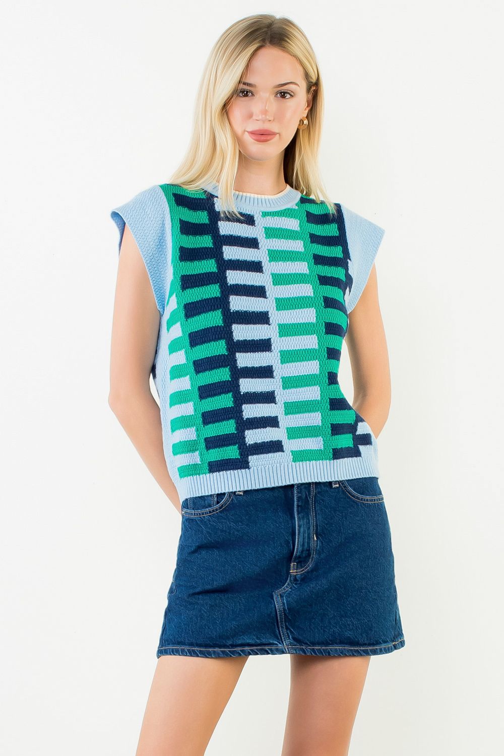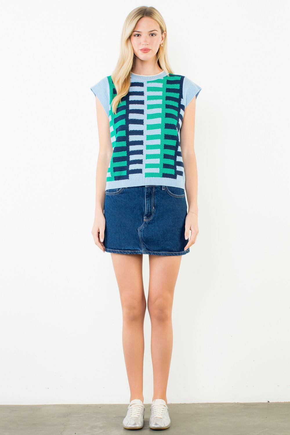 Kristina Knit Sleeveless Top - Powder Blue, Navy & Light Emerald