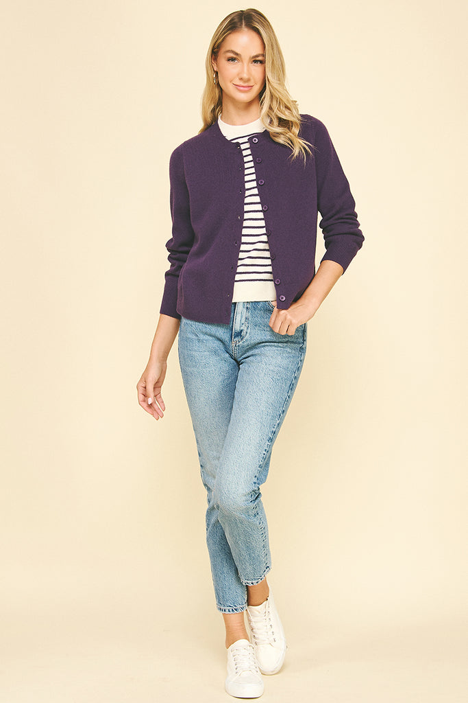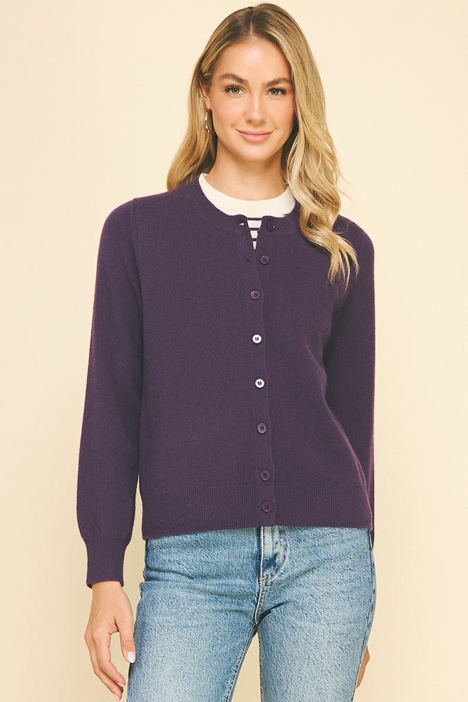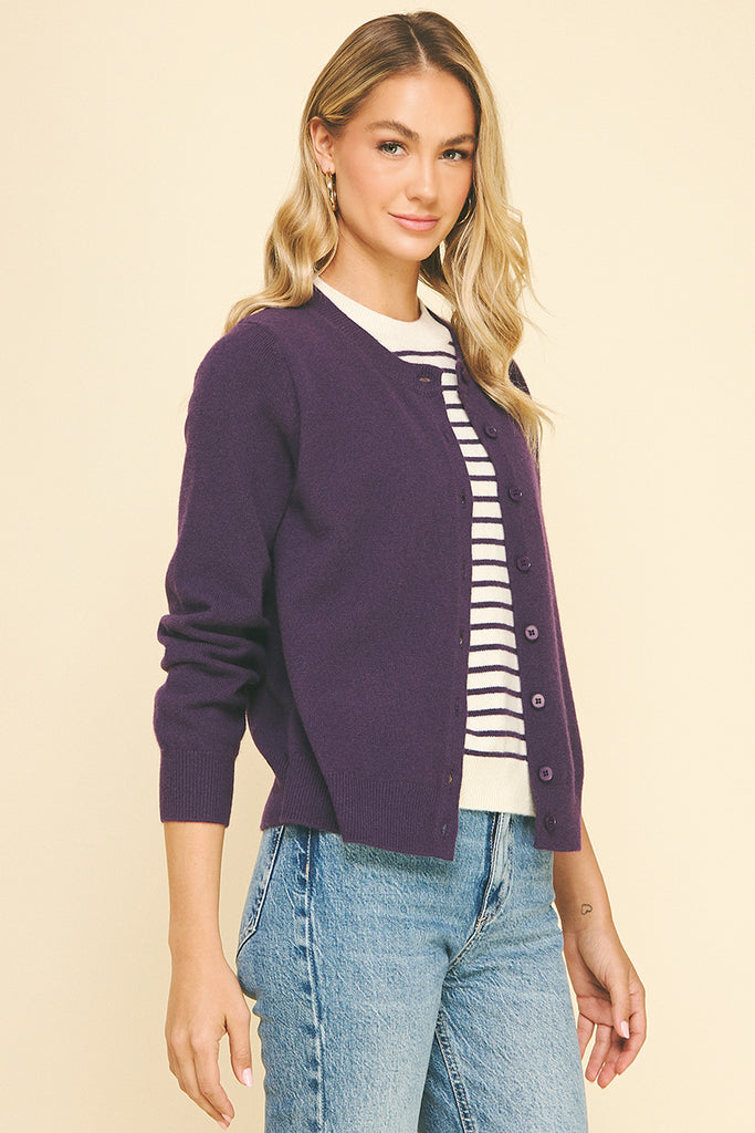 Monica Sweater & Cardigan Set - Royal Purple & Oyster