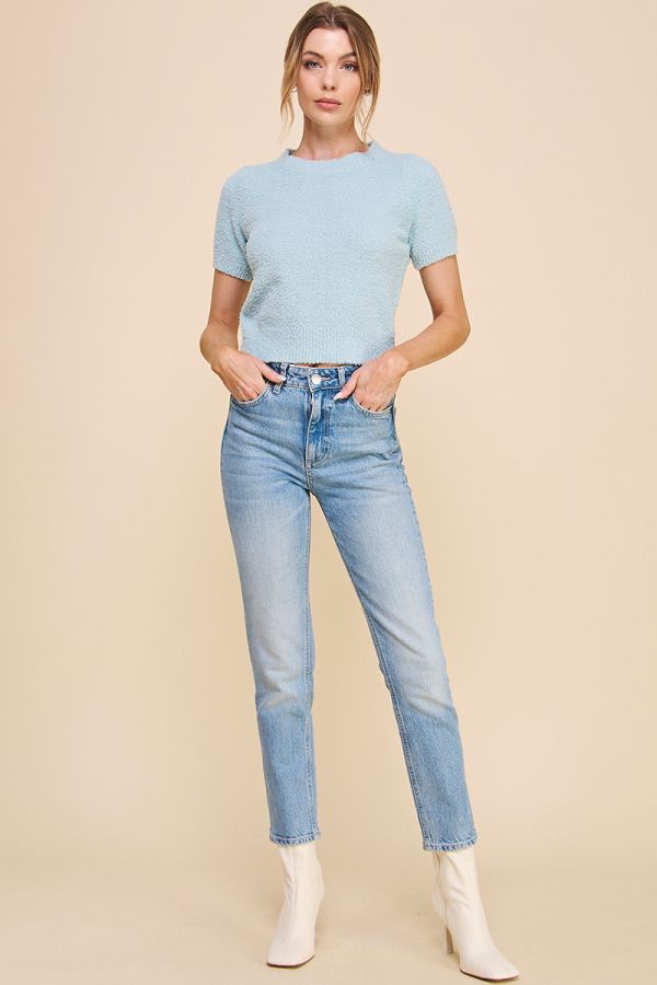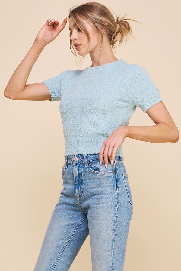 Paige Cozy Short Sleeve Sweater - Duck Egg
