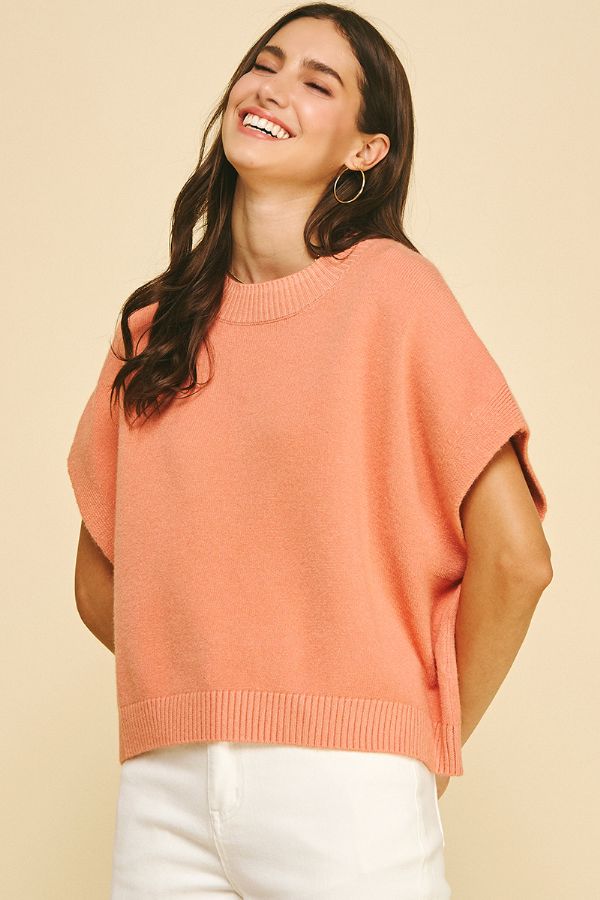 Sterling Boxy Short Sleeve Sweater - Rich Apricot